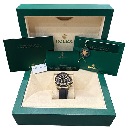 2021 PAPERS Rolex Daytona BLACK DIAMOND 18K Gold Rubber Oysterflex 116518 LN BOX