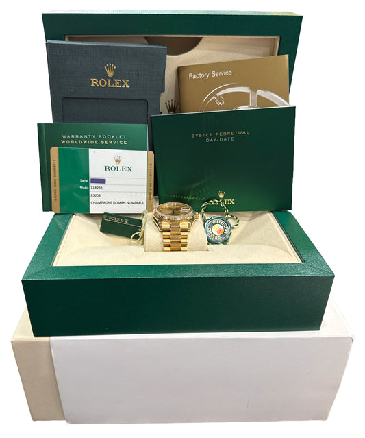 NOS 2016 PAPERS Rolex Day-Date President CHAMPAGNE ROMAN 36mm 18K 118238 BOX