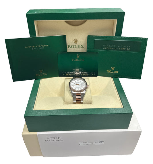 2024 PAPERS Rolex DateJust 36 WHITE 18k Rose Gold OYSTER Steel 36mm 126231 BOX