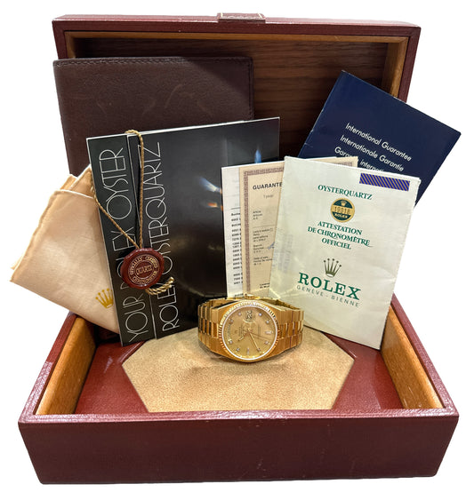 1984 PAPERS Rolex OysterQuartz Day-Date President CHAMPAGNE DIAMOND 19018 BOX