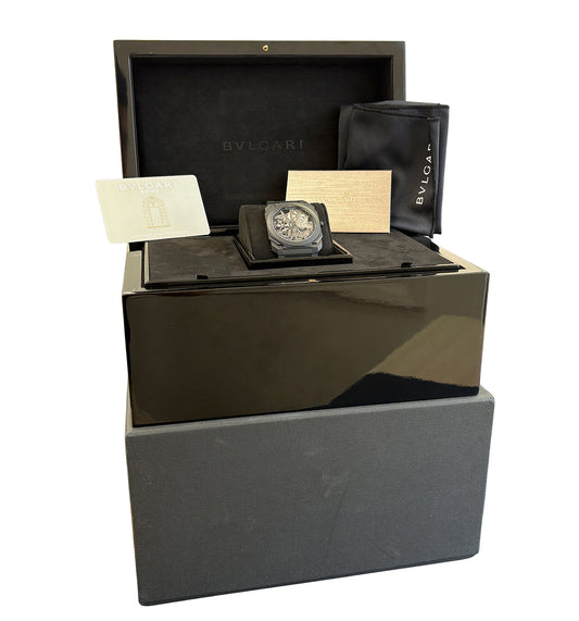 PAPERS BVLGARI Bulgari Octo Finissimo 40 BLACK CERAMIC SKELETON 103126 Watch BOX