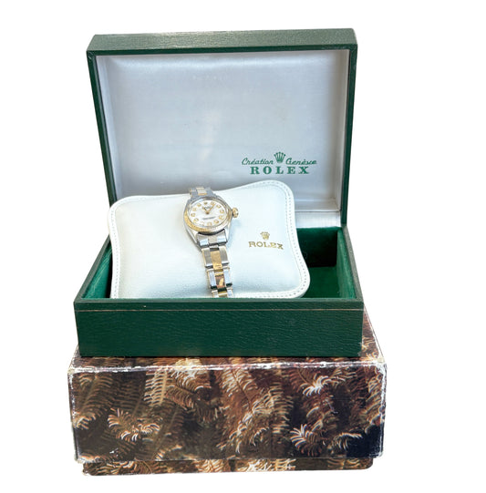 Ladies Rolex Oyster Perpetual 26mm Mother of Pearl Diamond Fluted Gold 6619 Watch BOX