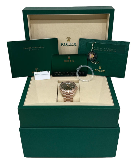 2025 PAPERS Rolex Day-Date President 40mm OLIVE GREEN 18K Rose Gold 228235 BOX