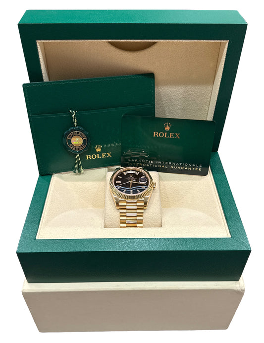 2023 PAPERS Rolex Day-Date President 40mm FACTORY ONYX BAGUETTE 18K 228238 BOX