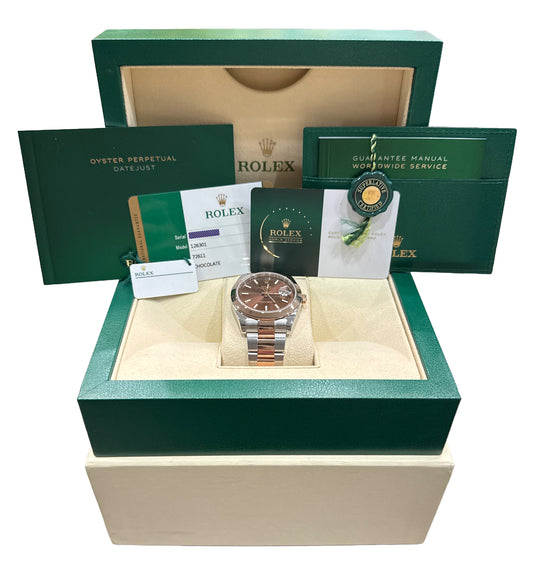 2026 RSC PAPERS Rolex DateJust 41mm CHOCOLATE 18K Rose Gold Steel 126301 BOX