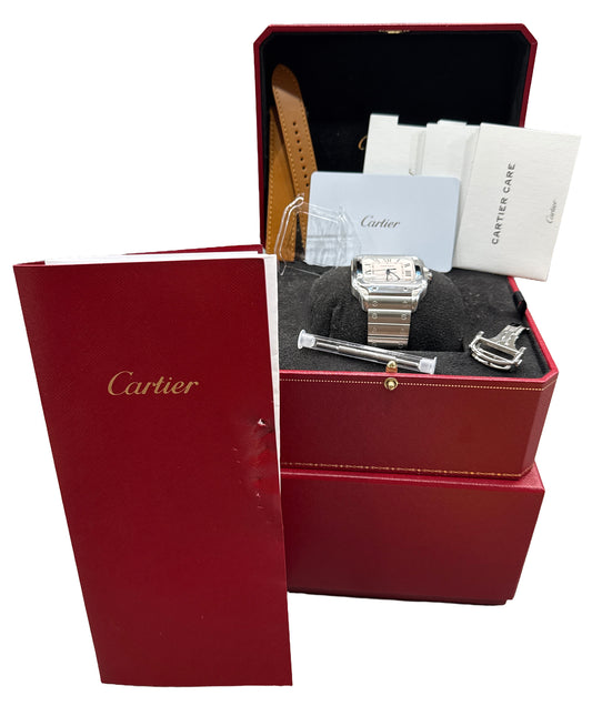 2025 PAPERS Cartier Santos 39.8mm SILVER ROMAN Steel Stainless 4072 WSSA0018 BOX