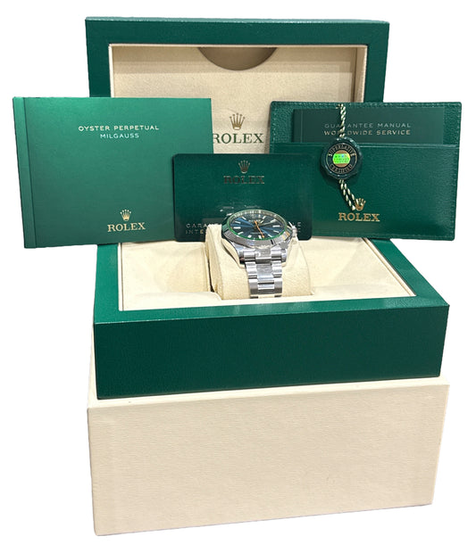 NOS STICKERED 2023 PAPERS Rolex Milgauss BLUE Green 40mm 116400 GV Watch BOX