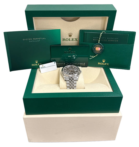 2023 PAPERS Rolex DateJust 41 RHODIUM DIAMOND 18k Steel JUBILEE 41mm 126334 BOX