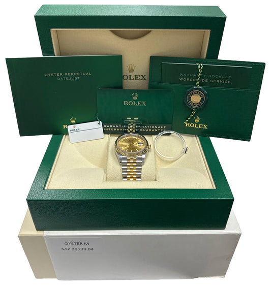 NEW STICKERED 2021 PAPERS Rolex DateJust 36mm CHAMPAGNE 18K JUBILEE 126233 BOX