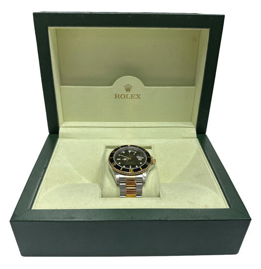 Rolex Submariner Date 40mm BLACK NO-HOLES Stainless 18K GOLD BUCKLE 16613 BOX