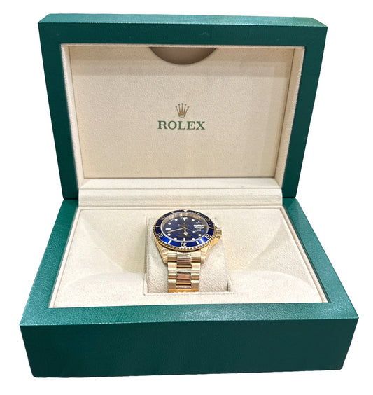 Rolex Submariner Date BLUE 18K Yellow Gold Oyster Automatic 40mm 16618 Watch BOX