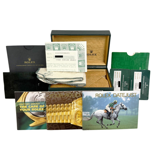 1999 Papers + RSC Rolex DateJust Steel IVORY JUBILEE 36mm 16234 Fluted Watch BOX