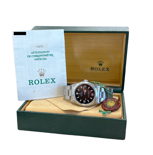 UNPOLISHED PAPERS Rolex Explorer I 36mm NO-HOLES Oyster 14270 Steel Watch BOX