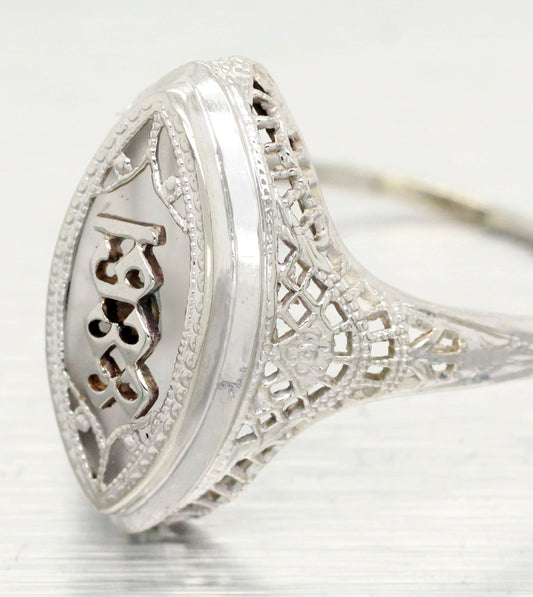 1938 Antique Art Deco Resin Marquise Cocktail Ring - 14k White Gold - Size 8