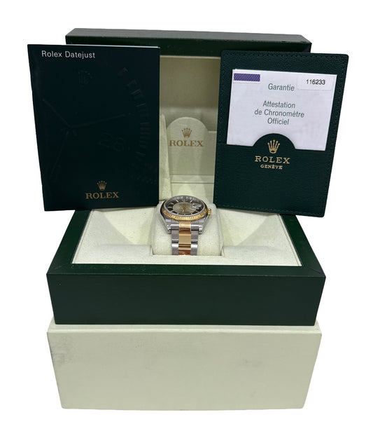 PAPERS Rolex DateJust 36mm Silver Black TUXEDO DIAL 18K Gold OYSTER 116233 BOX