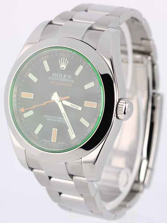 PAPERS Rolex Milgauss Green BLACK 40mm 116400 GV Stainless Steel Watch BOX