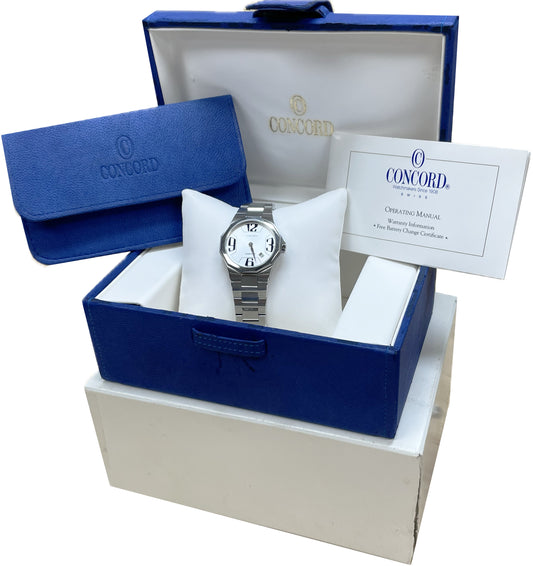 MINT Ladies Concord Mariner Steel Silver Quartz 30mm Date Watch 14.E6.1850 BOX