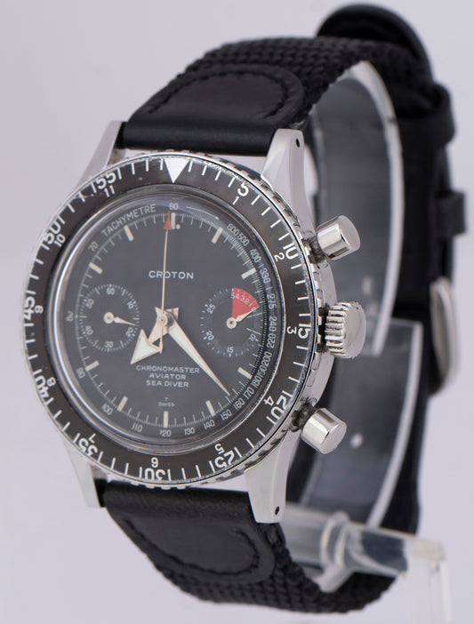 Men's Vintage Croton Chronomaster Aviator 38mm Black Chronograph Watch 105-25249
