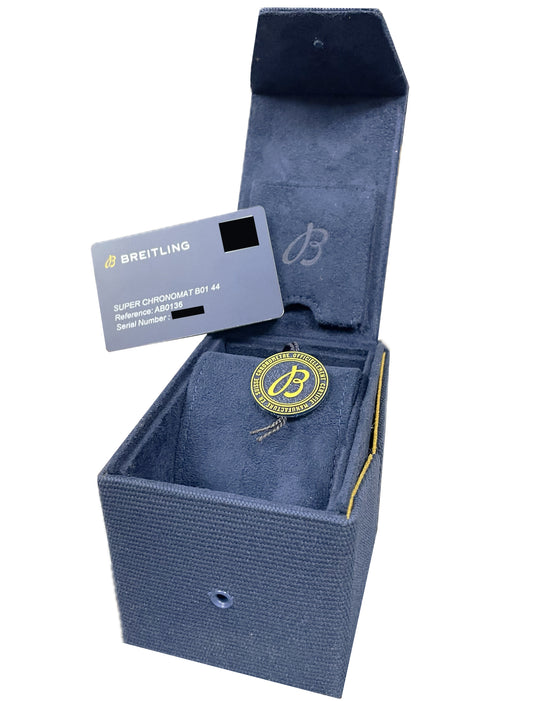 MINT PAPERS Breitling Super Chronomat B01 44mm Steel Blue 44mm Watch AB0136 BOX