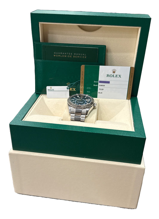 PAPERS Rolex Sky-Dweller BLUE Steel 18K White Gold 42mm OYSTER Watch 326934 BOX