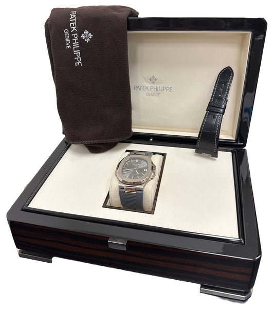 Patek Philippe Nautilus GRAY Rubber 18K White Gold Leather 40mm 5711G-001 BOX