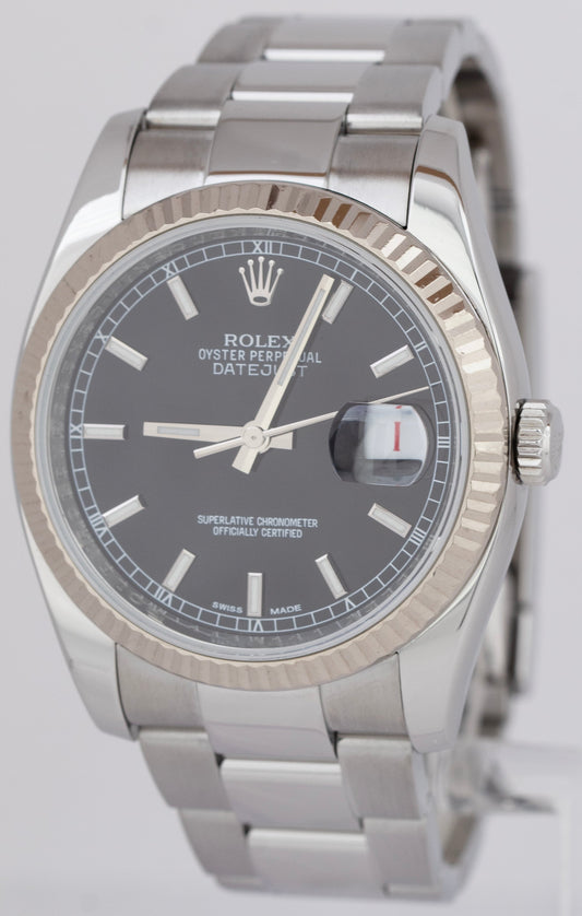 Rolex DateJust 36mm Black Red Roulette Stainless Steel White Gold Watch 116234