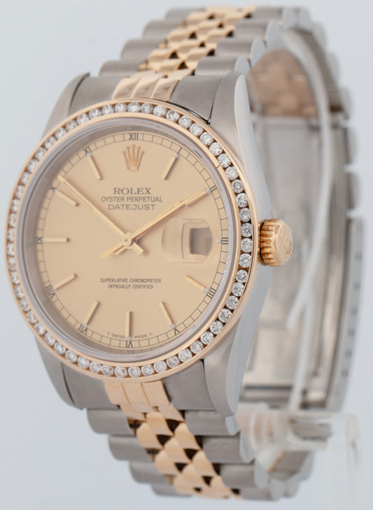 Rolex DateJust 36mm Champagne DIAMOND Bezel 18K Gold JUBILEE Steel Watch 16233