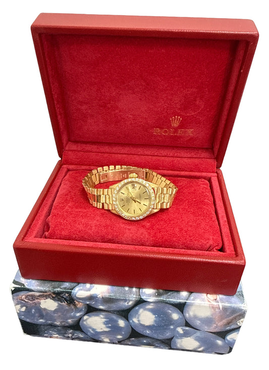 Rolex DateJust President 26mm Champagne DIAMOND BEZEL 18K Yellow Gold 69178 BOX