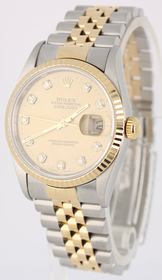 Rolex DateJust Two-Tone 18k Gold NO-HOLES Champagne DIAMOND 36mm 16233 Watch