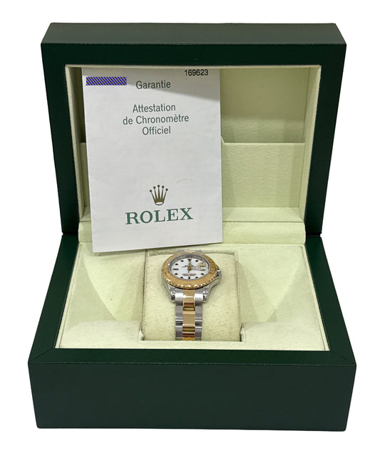 PAPERS Ladies Rolex Yacht-Master 29mm WHITE 169623 Two-Tone 18K Gold Watch BOX