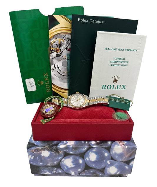 PAPERS Ladies Rolex DateJust SILVER 18K Yellow Gold Steel 26mm OYSTER 79173 BOX