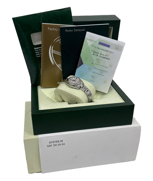 PAPERS Rolex DateJust 26mm FACTORY ROSE MOP DIAMOND 18K Steel Oyster 179174 BOX
