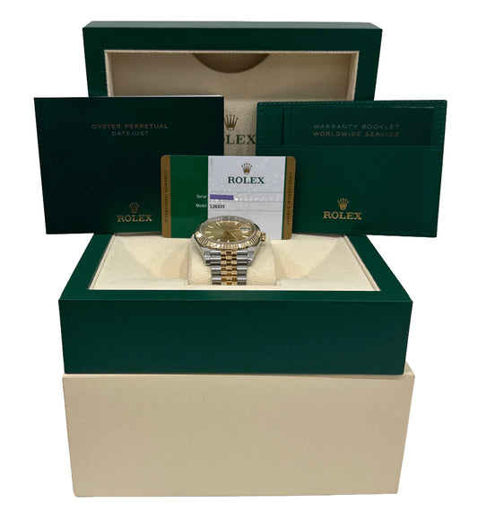 PAPERS Rolex DateJust 41 CHAMPAGNE 18K Gold Steel JUBILEE 41mm 126333 Watch BOX