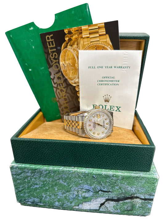 PAPERS Rolex DateJust 36mm MOP DIAMOND Two-Tone 18K Gold JUBILEE Watch 16233 BOX
