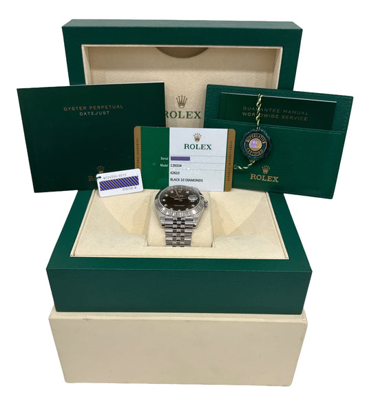 PAPERS Rolex DateJust 41mm BLACK DIAMOND 18K White Gold Steel JUBILEE 126334 BOX