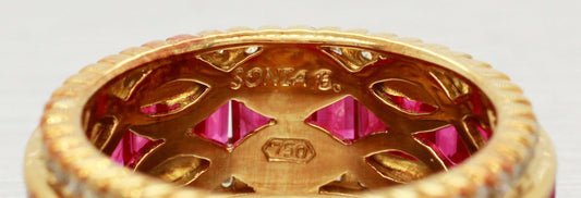 Sonia Bitton 5.20ctw Ruby & Diamond Eternity Ring | 18k Yellow Gold Band