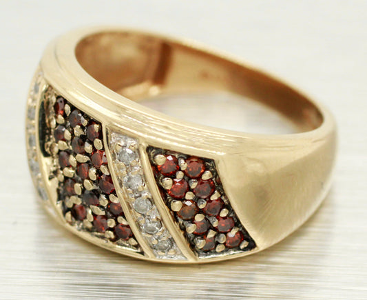 Vintage 0.23ctw Orange Diamond & White Diamond Pave Band Ring - 14k Yellow Gold