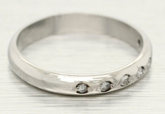Vintage 0.07ctw Diamond Small Wedding Band - Thin Platinum Ring - Size 5.50
