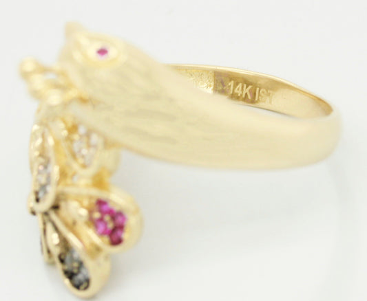 Vintage 0.10ctw Ruby Peacock Ring - 14k Yellow Gold - Size 8