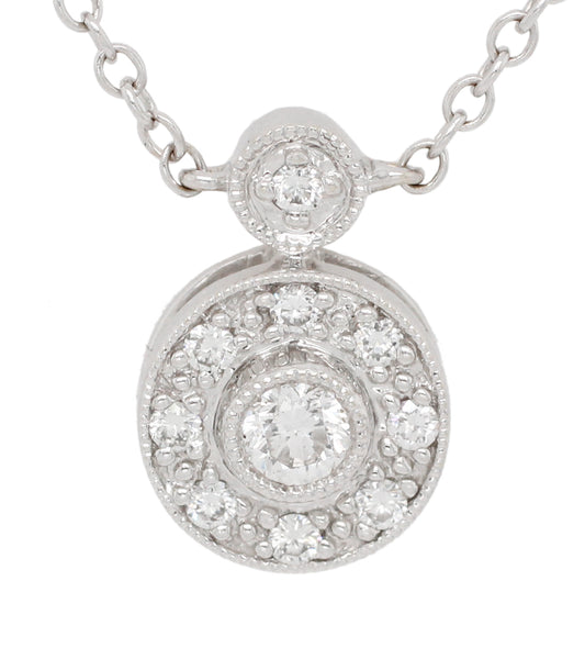 Vintage 0.25ctw Round Pendant Diamond Station Necklace 18" - 14k White Gold