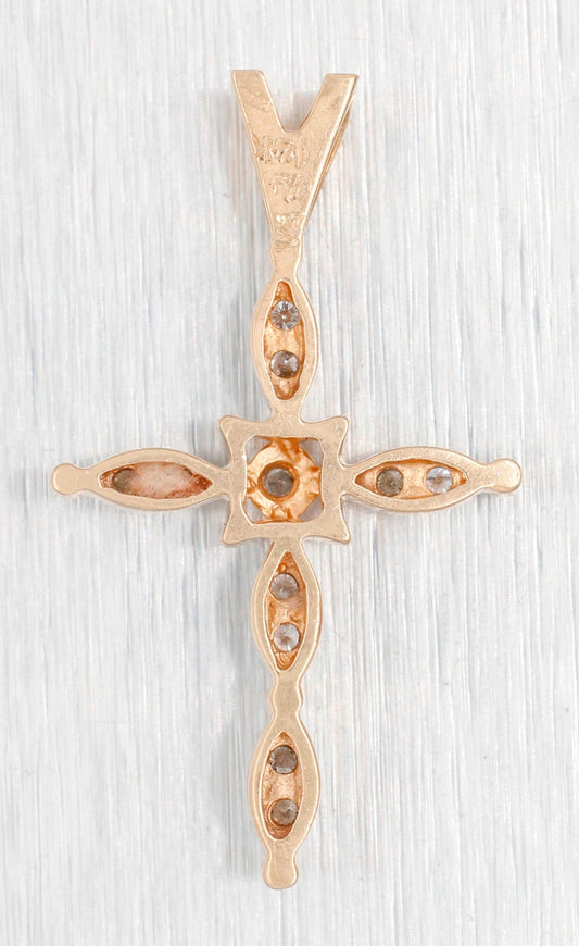 Vintage 0.25ctw Diamond Marquise-Shape Cross Pendant - 14k Yellow Gold Charm