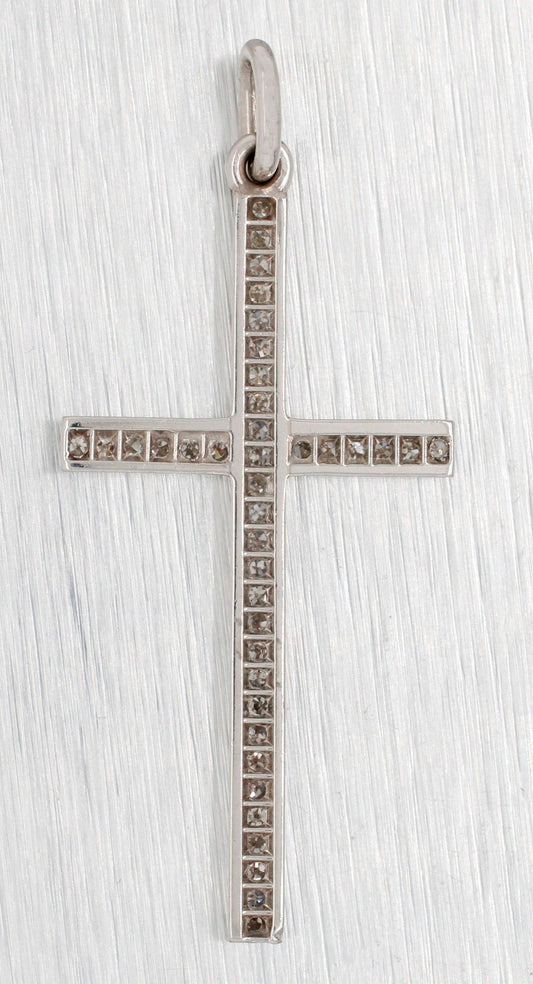 Vintage 0.10ctw Diamond Long Cross Pendant - 14k White Gold Charm