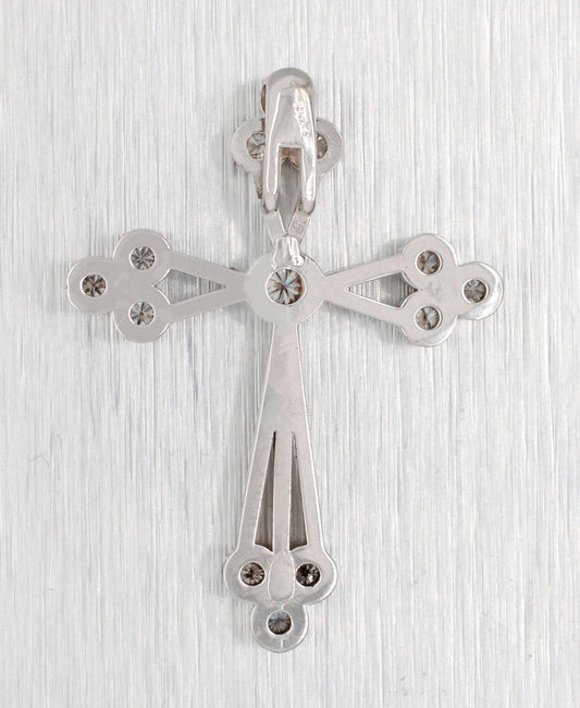 Vintage 0.10ctw Diamond Open Budded Cross Pendant - 14k White Gold Charm