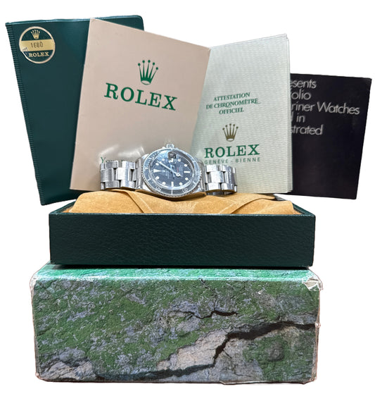 VINTAGE 1972 PAPERS Rolex Submariner Date RED Black Patina 40mm Steel 1680 BOX