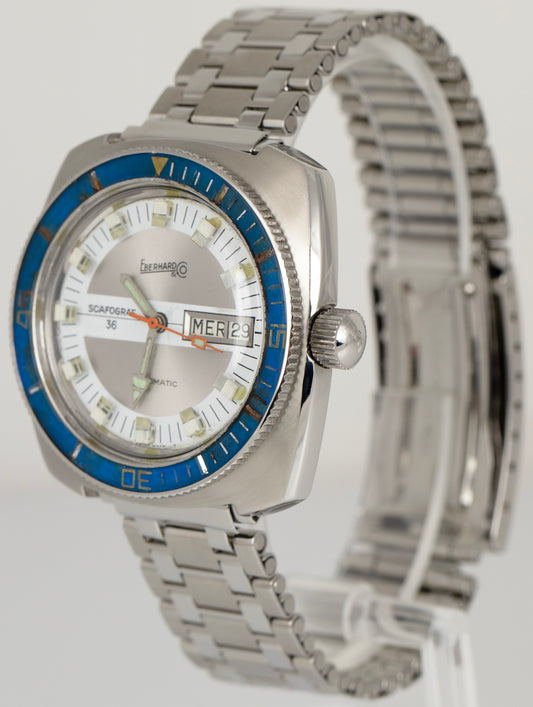 Vintage Eberhard & Co. Scafograf 36 Silver Blue 40mm Stainless Watch 26606-274