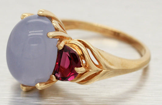 Vintage Light Cabochon Amethyst Cocktail Ring - Garnet Accents - 14k Yellow Gold