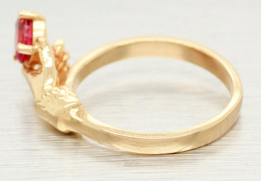 Vintage Oval Pink Tourmaline in Hand Ring - 14k Yellow Gold Setting - Size 6