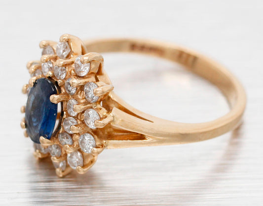Vintage Oval Sapphire & 0.25ctw Diamond Halo Cocktail Ring - 14k Yellow Gold