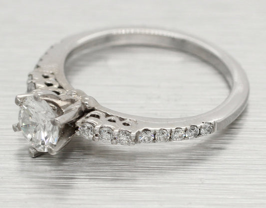 Vintage Petite 0.70ctw Diamond Engagement Ring - 14k White Gold - Size 3.75