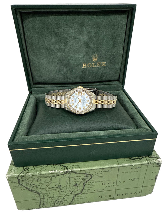 VINTAGE Rolex DateJust 26mm MOP DIAMOND 18K Yellow Gold Steel JUBILEE 6917 BOX